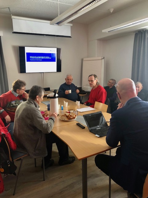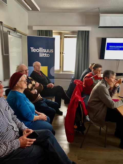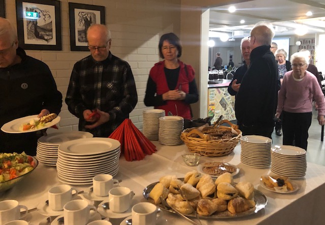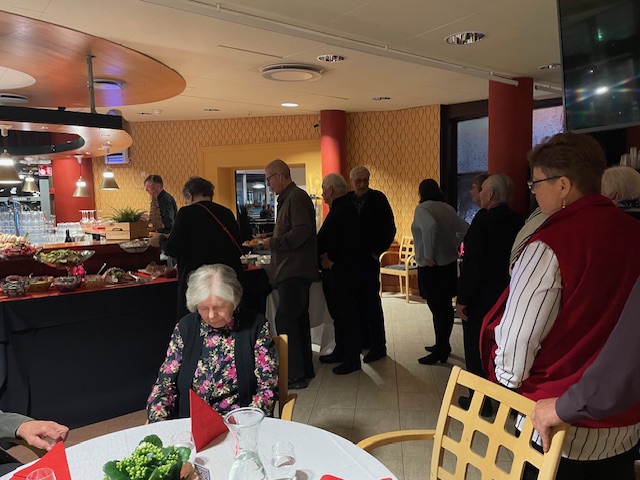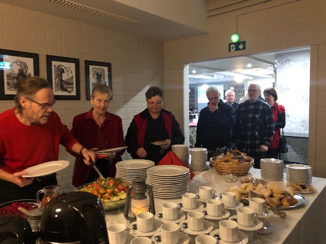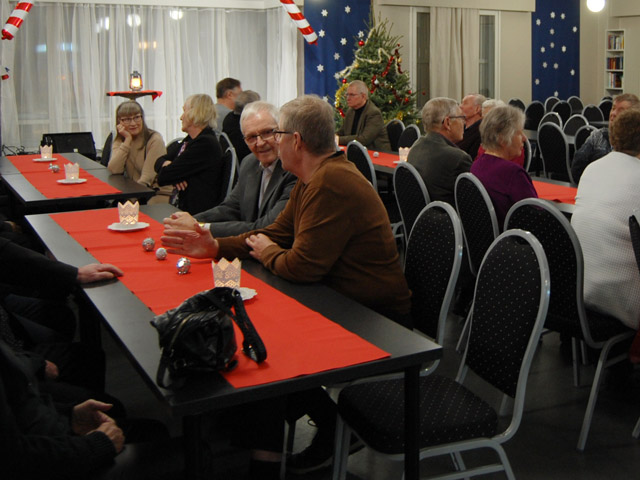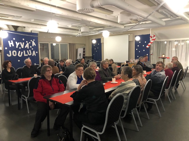 Eläkeläisten pikkujouluun 7.12 osallistui 40 henkilöä. Nautimme jouluisen buffetpöydän antimista, meillä oli monipuolista ohjelmaa mm. haitarinsoittoa, kinkkuarpajaiset, kolikonheittoa ja jouluaiheisia runoja ja kertomuksia. Nautimme myös kiireettömästä yhdessäolosta.