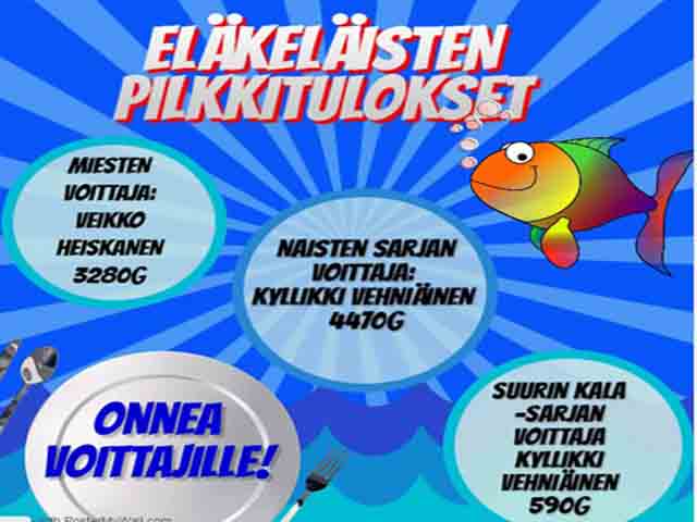 Eläkeläisiä kokoontui yhteiseen pilkkipäivään yhteensä n. 20 jäsentä. Sää oli tuulinen ja kolea. Yhteensä kalaa nousi yli 17 kg, pääasiassa saalis oli ahventa ja särkeä. Pilkkipäivän päätteeksi maistui lämmin hernekeitto, voileivät ja grillimakkarat ja päälle pullakahvit. Kiitos kaikille mukanaolleille!