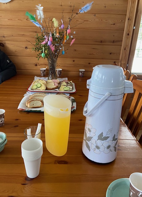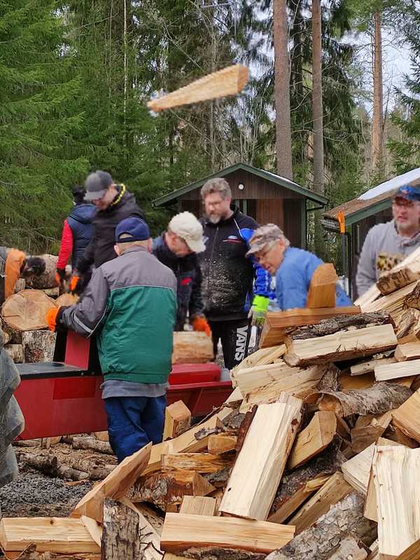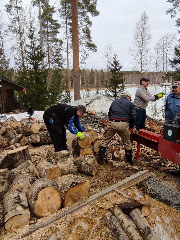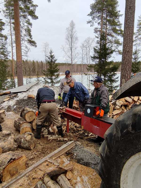Eläkeläisten ja osaston porukan yhteisillä talkoilla saimme tehtyä monen vuoden puut mökille. Kiitokset ahkeralle talkooväelle. Riitta ja Sari oli järjestänyt maittavat tarjoilut meille.