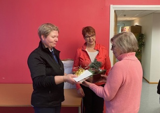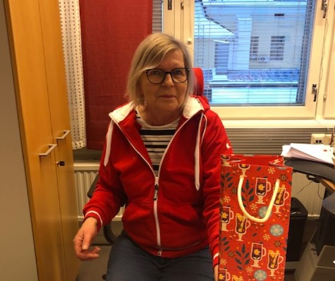 Ammattiosaston toimistonhoitaja Helena jäi 33 työvuoden jälkeen eläkkeelle, muistimme häntä osaston joulukahvien yhteydessä.