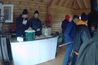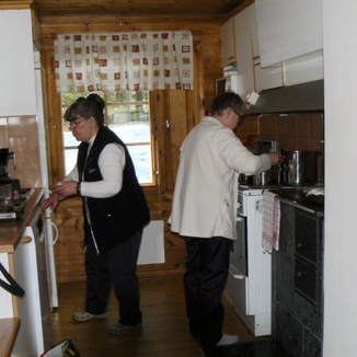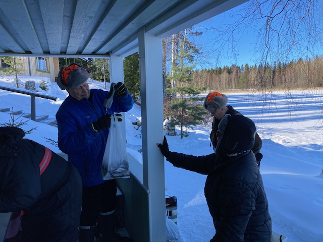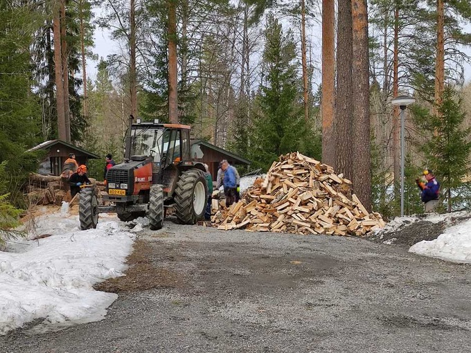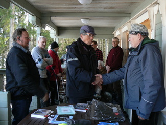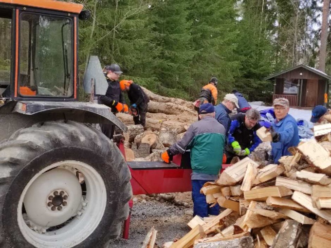 Eläkeläisten ja osaston porukan yhteisillä talkoilla saimme tehtyä monen vuoden puut mökille. Kiitokset ahkeralle talkooväelle. Riitta ja Sari oli järjestänyt maittavat tarjoilut meille.