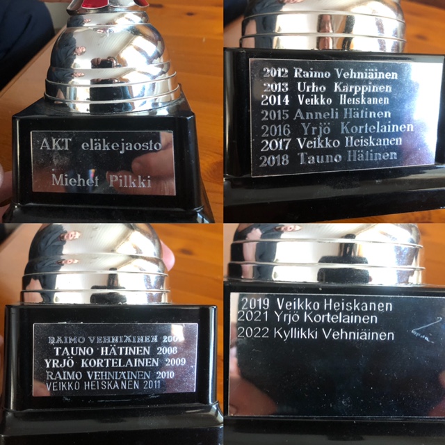 Eläkeläisten pikkujoulu 14.12 Iso-Valkeisella, mukana oli 40 AKT:n eläkeläiskerholaista! Kiitos kaikille mukavasta ohjelmasta ja hauskasta illasta. Arpajaisten pääpalkinnon, valmiin joulukinkun, voitti perhe Heiskanen ja viinipullon kolikonheiton tarkkuuskisassa voitti Rauno Pirhonen. Joulupukki toi tervehdyksen meille Korvatunturilta ja jakoi kaikille pikkujoulupaketit. Tanssimme Heidi Pakarisen tahdittamana aamutunneille saakka.