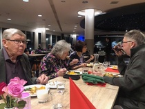 Eläkeläisten pikkujouluun 7.12 osallistui 40 henkilöä. Nautimme jouluisen buffetpöydän antimista, meillä oli monipuolista ohjelmaa mm. haitarinsoittoa, kinkkuarpajaiset, kolikonheittoa ja jouluaiheisia runoja ja kertomuksia. Nautimme myös kiireettömästä yhdessäolosta.