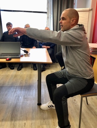 Liikunnan ohjaaja Jyrki Tarvainen kertoi Kuopion liikunta mahdollisuuksista ja liikunnan merkityksestä terveyteen.