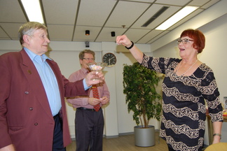 Ammattiosaston toimistonhoitaja Helena jäi 33 työvuoden jälkeen eläkkeelle, muistimme häntä osaston joulukahvien yhteydessä.